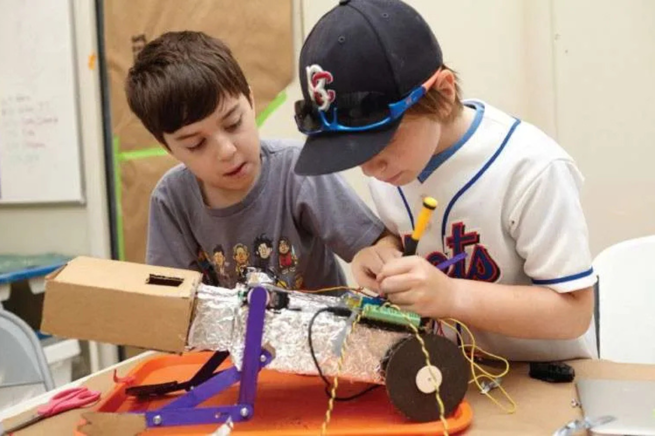 Your child builds robots, races cars, codes games, and launches experiments.